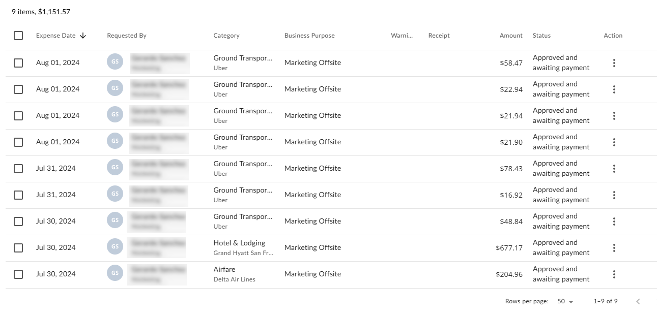 When you review users' reimbursable expenses, you might come across the "Approved and Awaiting Payment" status indicator.